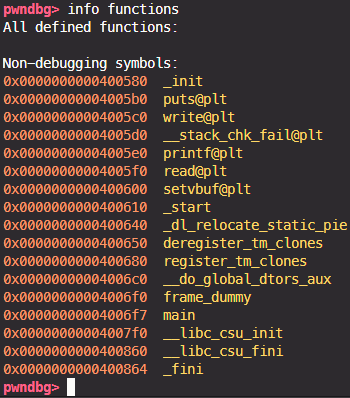 일반적인 rop 문제에서 gdb로 info function을 해보면 다음과 같다.