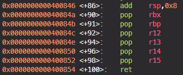 이 함수 내부에는 ROP에서 활용 가능한 gadget들이 존재한다.
