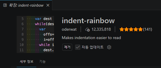 - 코드의 들여쓰기를 색상으로 구분