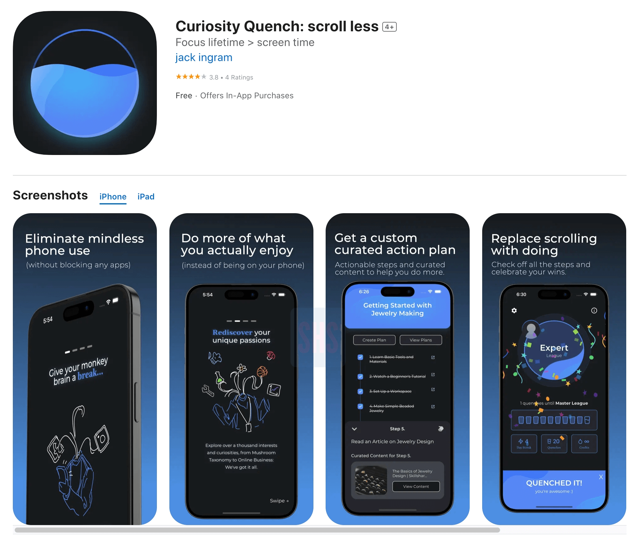Jack์ด ๊ฐ๋ฐ์ ๋ฐฐ์ฐ๊ณ ์ฒ์์ผ๋ก ๊ฐ๋ฐํ ๋ชจ๋ฐ์ผ ์ฑ์ธ Curiosity Quench๋,