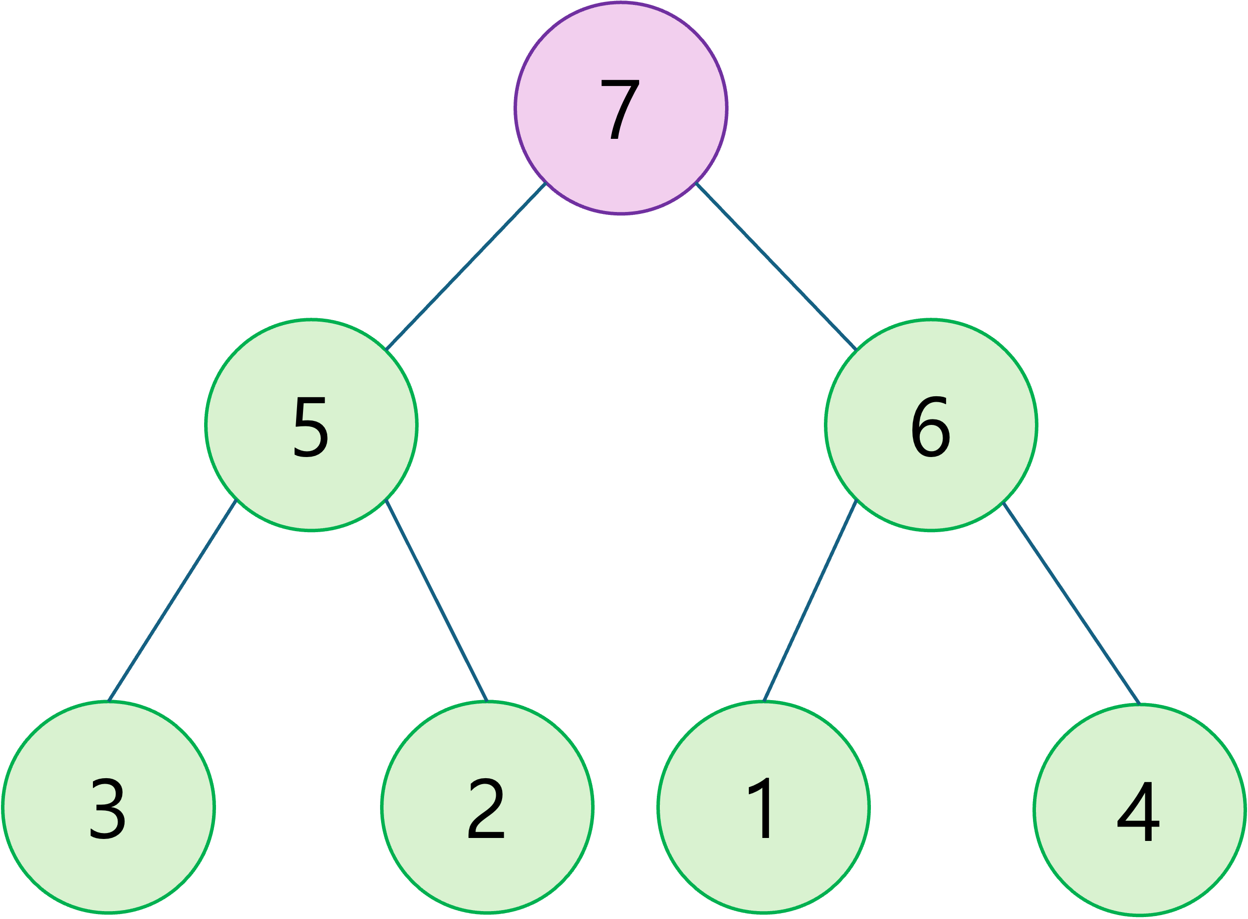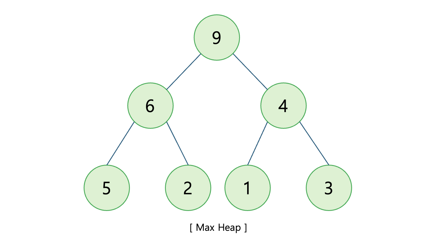 힙의 정의에 따라 부모 노드의 값이 자식 노드보다 항상 크다는 것을 확인할 수 있습니다. 루트 노드는 모든 노드의 최고 조상이므로 가장 값이 크다는 특징이 있습니다. 이러한 특징을 가지는 자료구조를 힙 중에서도 '최대 힙(Max Heap)'이라고 부릅니다.