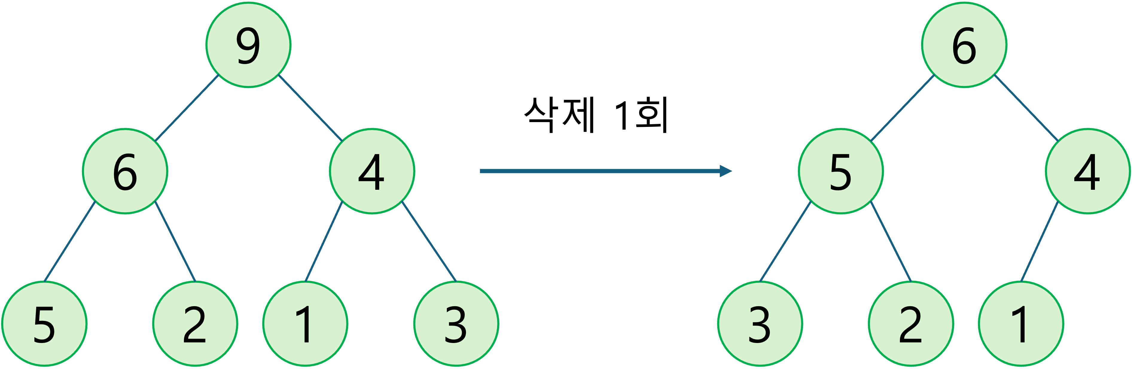 힙에서 루트를 삭제 후, 마지막 요소가 제자리를 찾을 때까지 내려가는 최악의 경우는 힙의 높이만큼입니다.