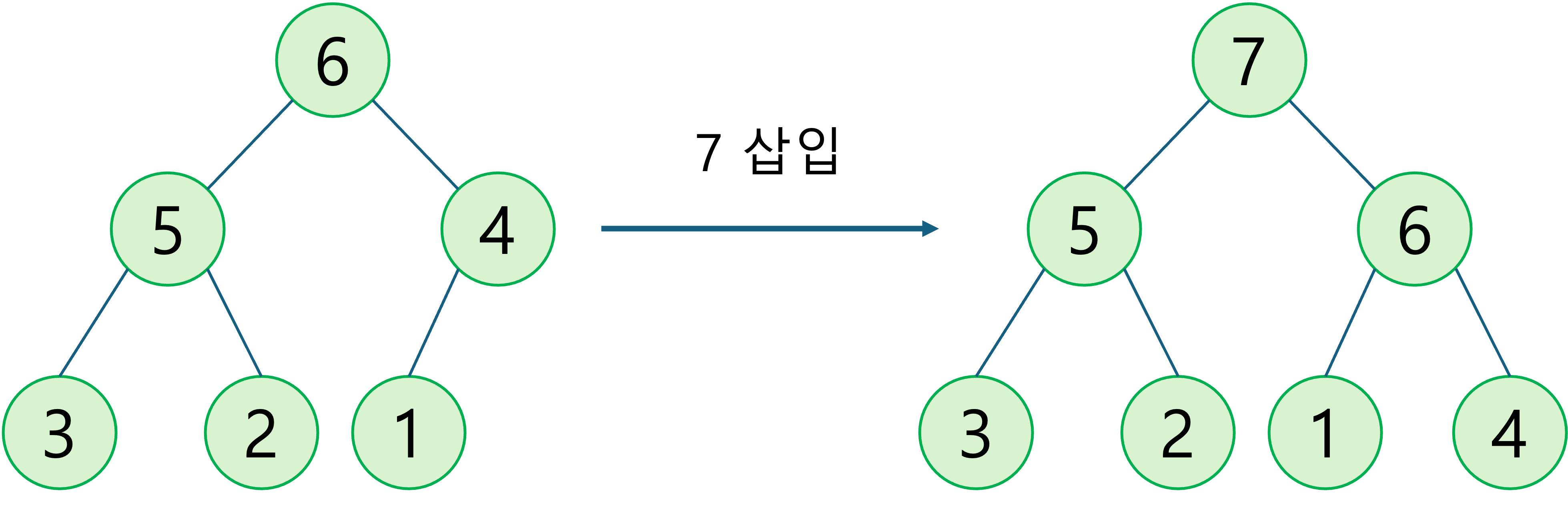 삽입이 완료되었습니다. 삽입 연산 전 후의 모습은 다음과 같습니다.