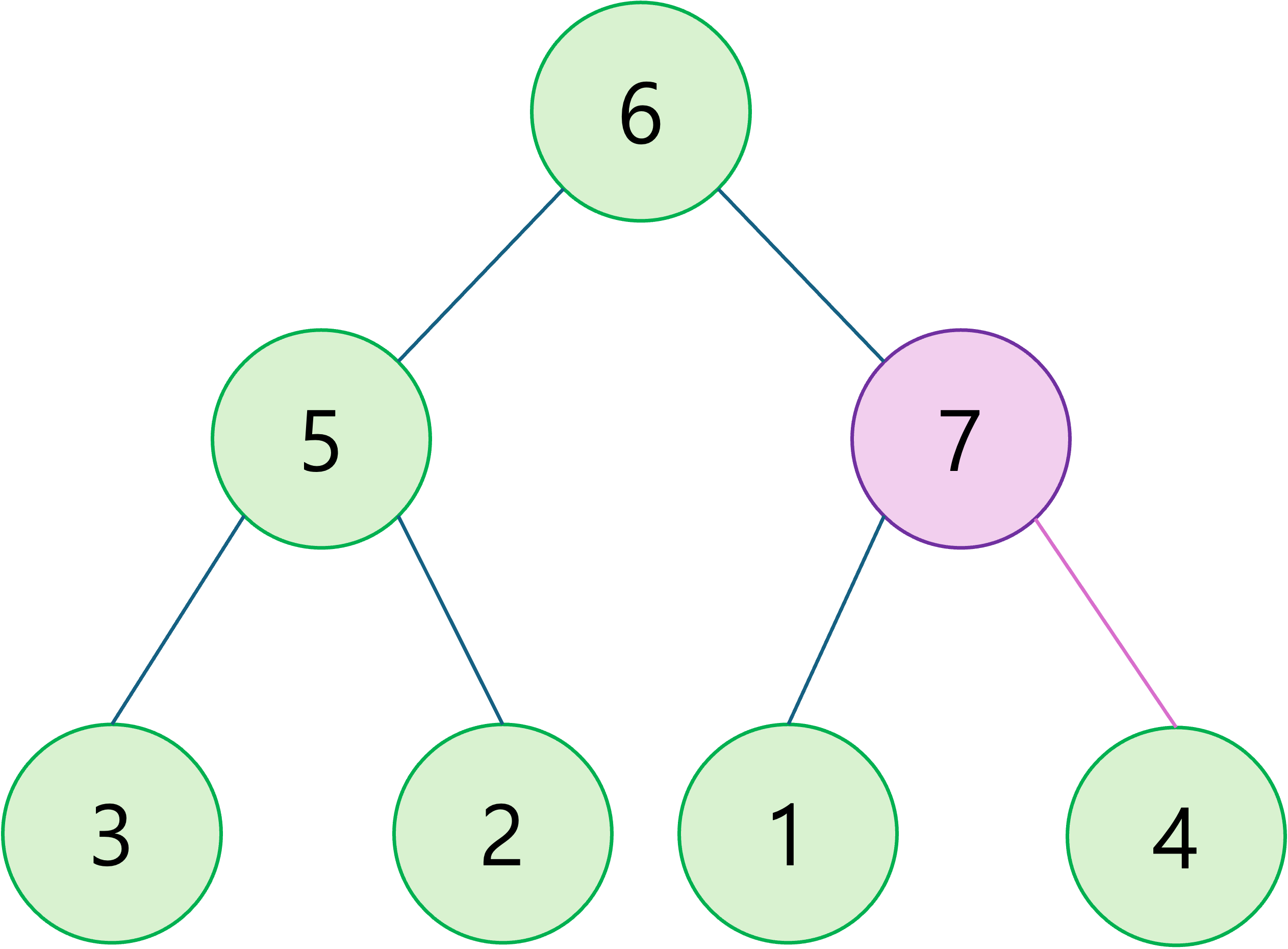 우선순위가 높은 자식이 있다면 위치를 바꾼다. (두 자식 노드가 모두 우선순위가 높다면, 둘 중에 우선순위가 더 높은 자식과 위치를 바꾼다.)