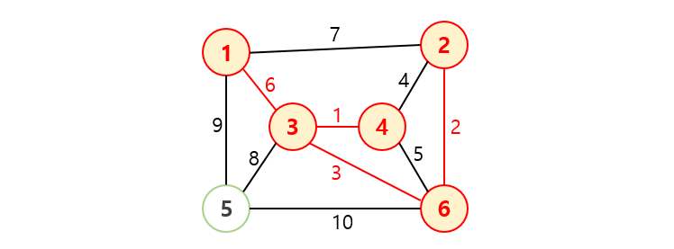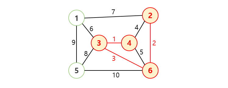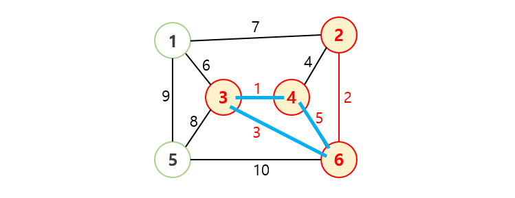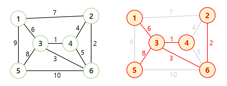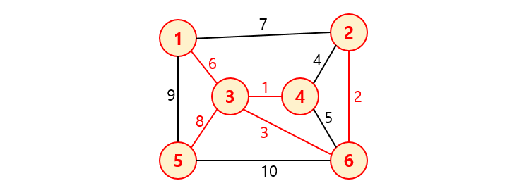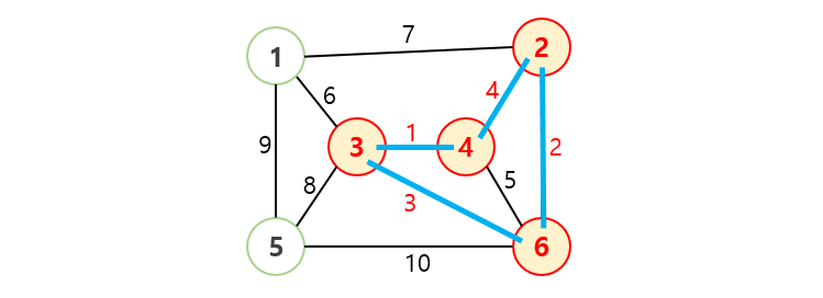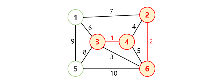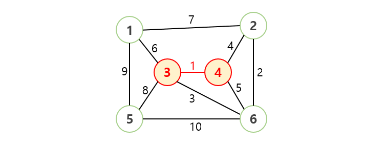 /* 사이클이 발생하지 않도록 가중치가 작은 간선부터 하나씩 선택 */