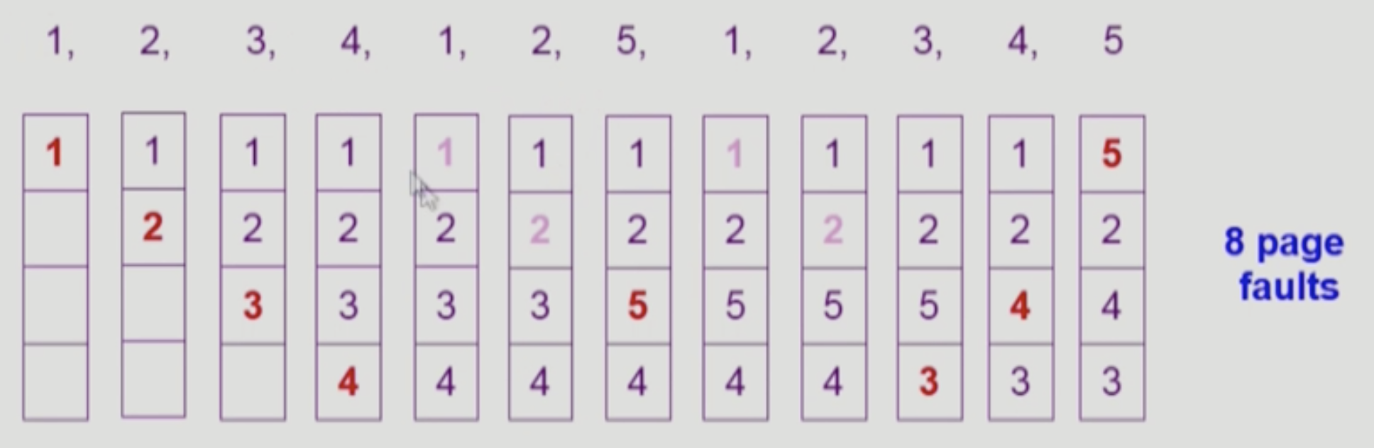 (3) 동일한 페이지가 여러 번 메모리에서 쫓겨났다가 다시 들어올 수 있음