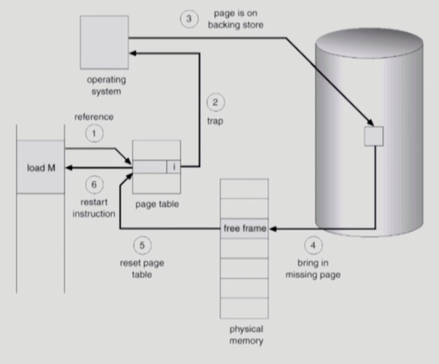 (2) Disk read가 끝나면 page tables entry 기록, valid/invalid bit = "valid"