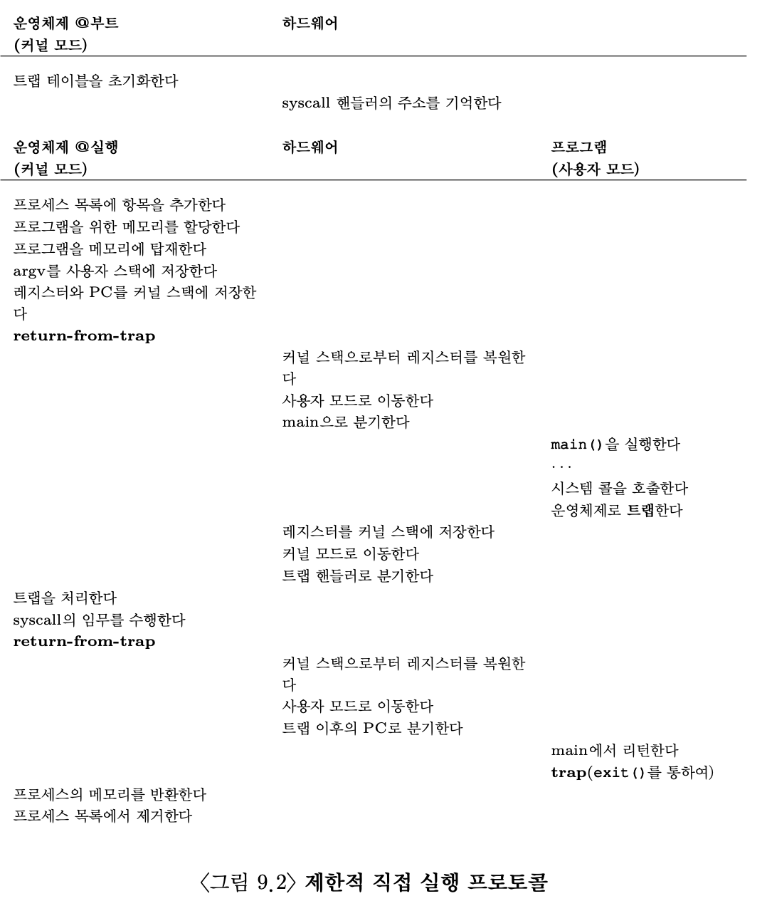 9.1 기본 원리: 제한적 직접 실행 (Limited Direct Execution)