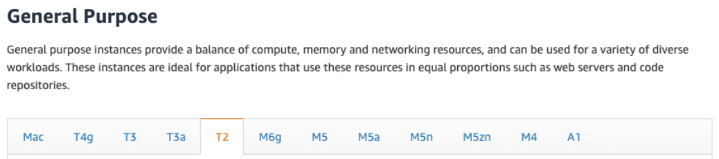 균형 잡힌 CPU, 메모리, 네트워크 리소스를 제공한다. 예: 웹 서버나 코드 리포지토리에 적합하다.