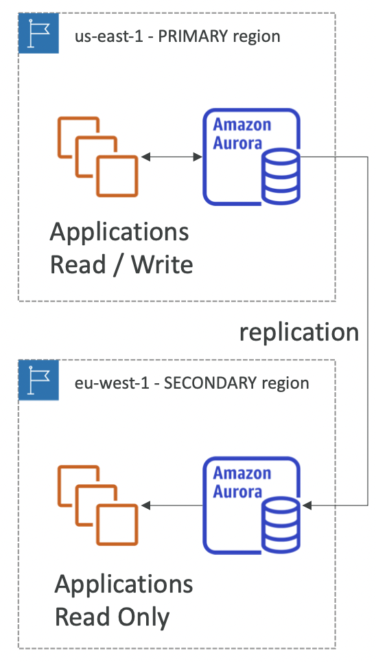 - 1개의 쓰기 리전 + 최대 5개의 읽기 리전