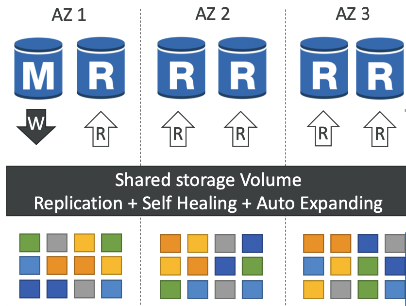 - 3개의 AZ에 6개의 스토리지 복제본 유지