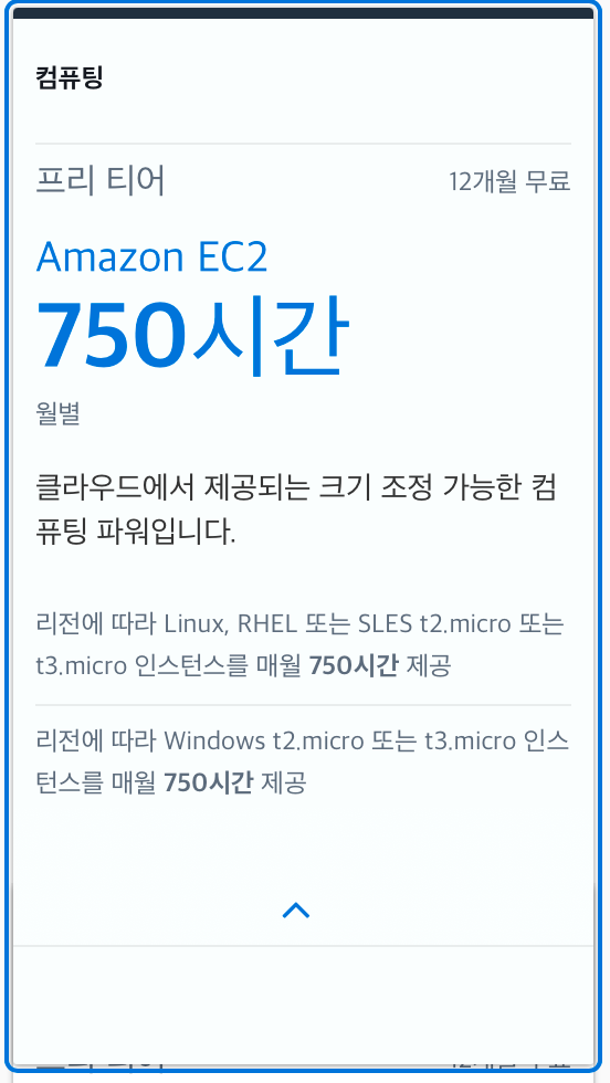 첫해에는 월 프리티어 계층 AMI에서 750시간의 t2.micro(또는 t2.micro를 사용할 수 없는 지역은 t3.micro) 인스턴스 사용, 월 750시간의 공용 IPv4 주소 사용, 30GiB의 EBS 저장소, 2백만 IO, 1GB의 스냅샷 및 100GB의 인터넷 대역폭이 포함된다고 한다.