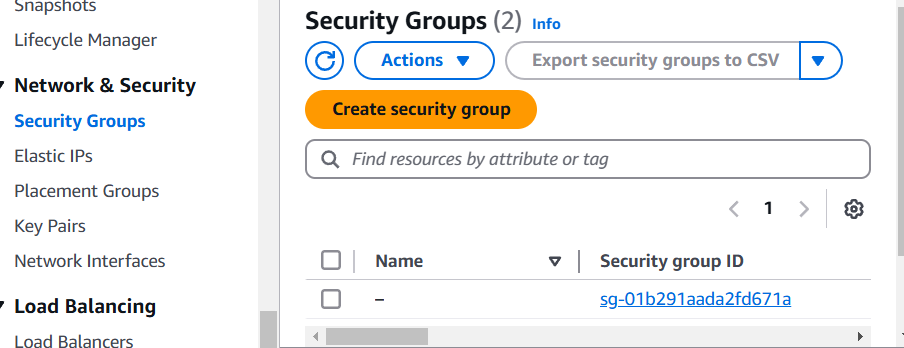 보안그룹은 EC2 > Network & Security > Security Groups 에서 확인할 수 있다.