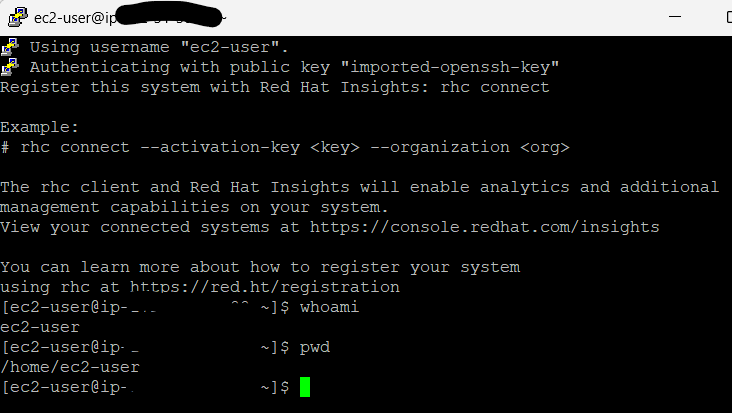 ssh -i <키파일.pem> ec2-user@<EC2 공용 IP>