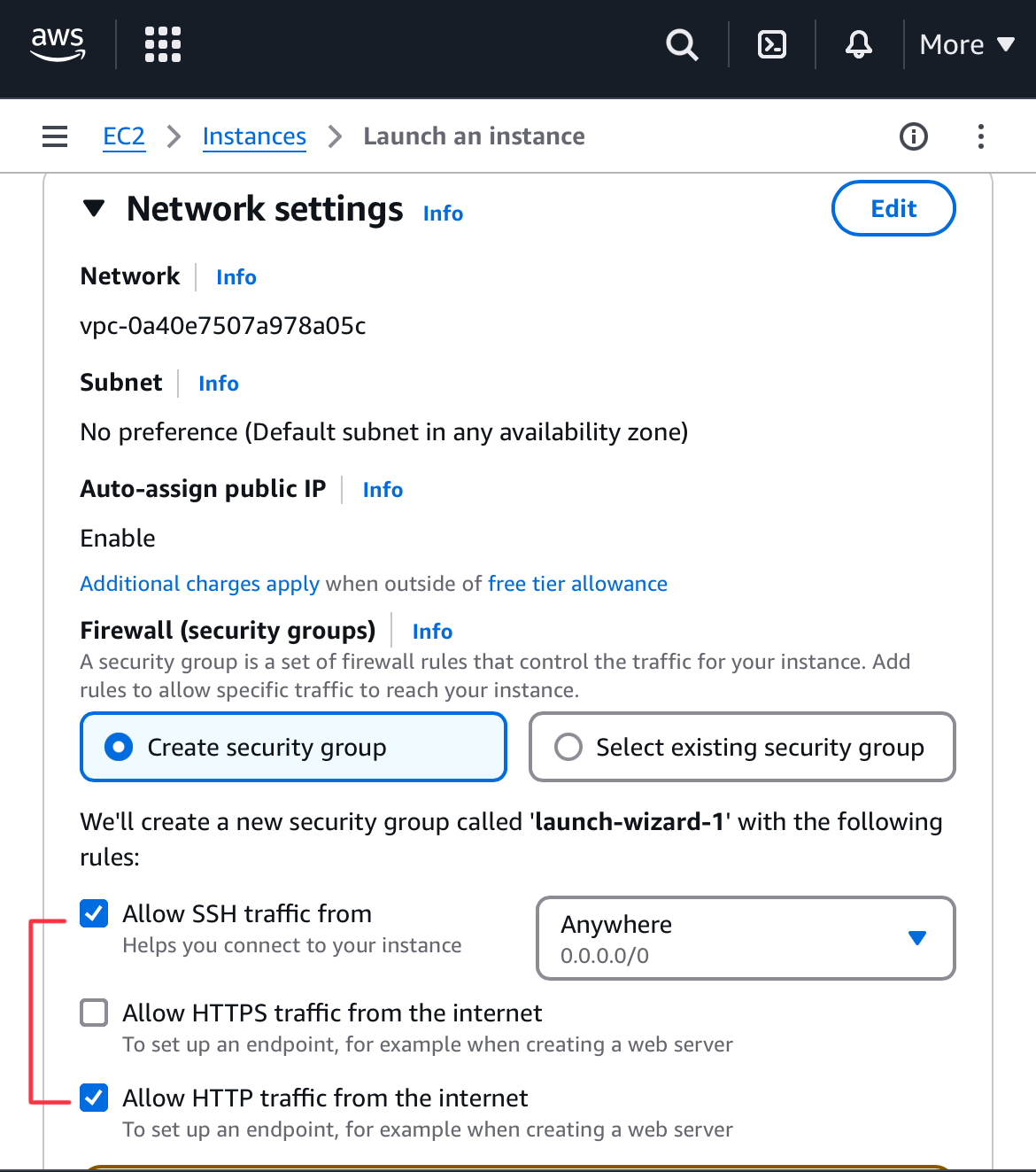 생성되는 보안그룹 이름인 launch-wizard-1는 콘솔에 의해 직접 생성된다.