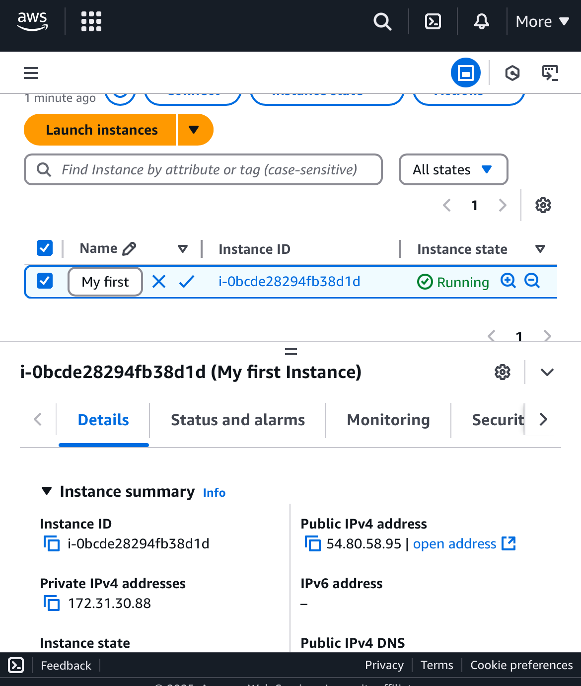 instances 란에서 내가 만든 인스턴스를 눌러보면 정보를 확인할 수 있다.