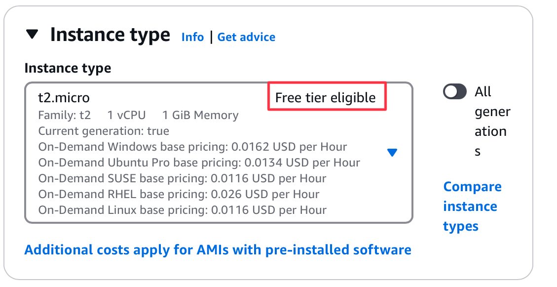 프리티어는 t2.micro , t3.micro 를 사용할 수 있다.