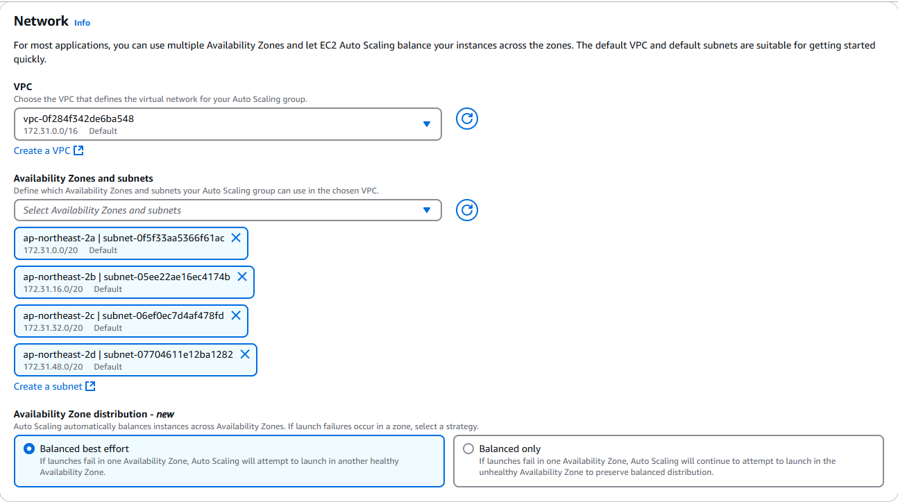 🚨여기서 AZ를 선택하면 AZ마다 Public IPv4를 부여받는다. (과금됨) EC2인스턴스가 있는 AZ를 해제하면 접속이 안되니 그 외는 필요에 따라 해제해준다.