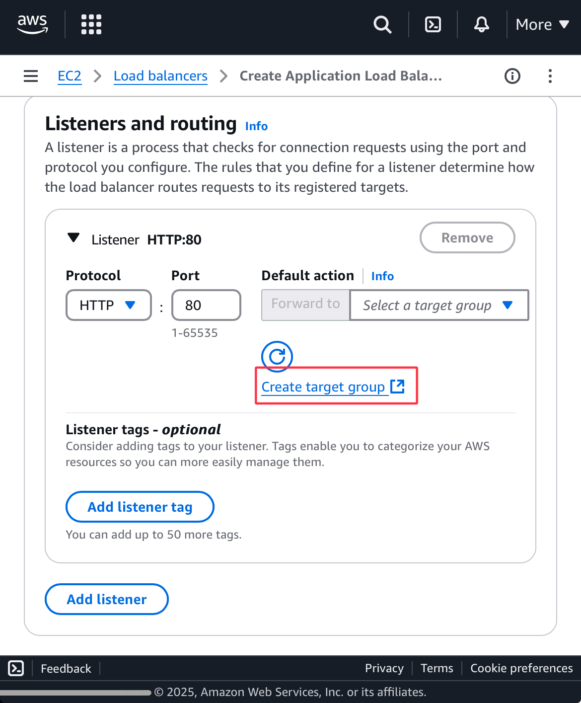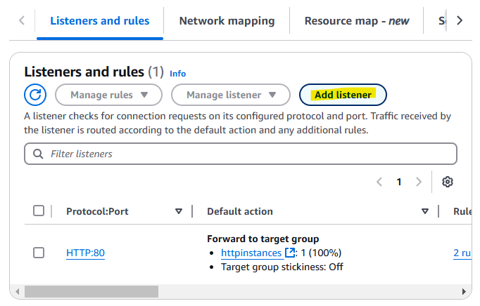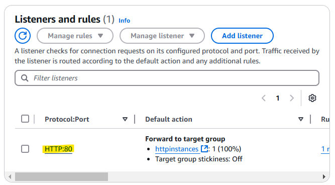 EC2 > Load Balancer 로 가서 ALB를 선택 > Listener > HTTP:80 클릭