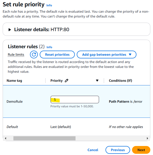 다음으로 규칙 우선순위를 설정할 수 있다.