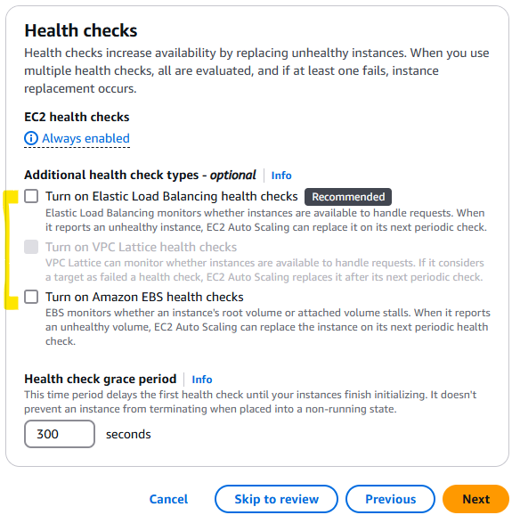 로드밸런서를 연결했다면 상태체크에서 ELB의 상태체크를 사용할 수 있다.