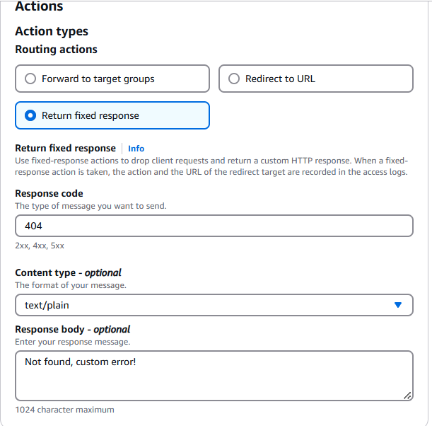 - Redirect to URL : 특정 URL로 리디렉션. 호스트, 경로, 쿼리 지정가능