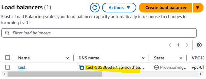 ALB가 생성된 것을 확인할 수 있다. DNS 이름을 복사해 url창에 입력하면 ALB를 통해 EC2인스턴스의 HTTP 접속이 가능하다.