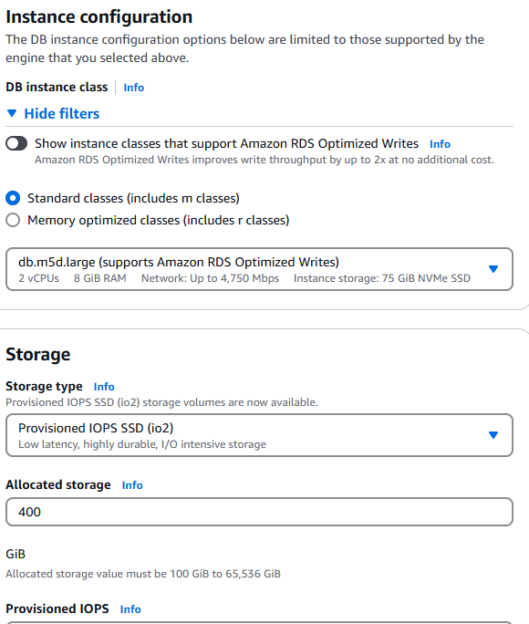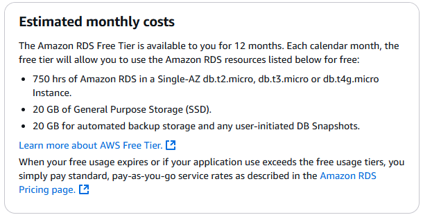 - RDS 데이터베이스를 생성할 때는 원하는 스토리지 용량을 지정해야 한다