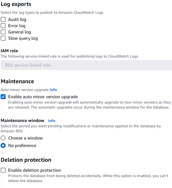 아래에서는 마이너 버전 업그레이드를 위한 윈도우 유지보수 기간설정과 실수로 DB를 삭제하는 것을 막는 삭제방지기능도 활성화할 수 있다.