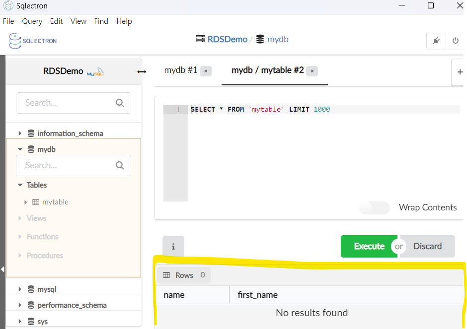 그러면 이처럼 테이블이 만들어진다. 이렇게 SQL클라이언트 프로그램으로 RDS에 접근해 사용할 수 있다.