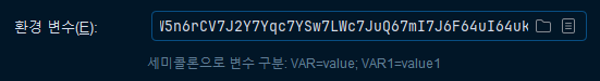 프로젝트 협업할 때 Git으로 파일을 공유할 때 application.properties 파일에 DB 이름과 비밀번호까지 같이 올라가게 되어 보안에 문제가 생길 수 있다. 그럴 땐 환경변수를 설정하면 해결이 된다.