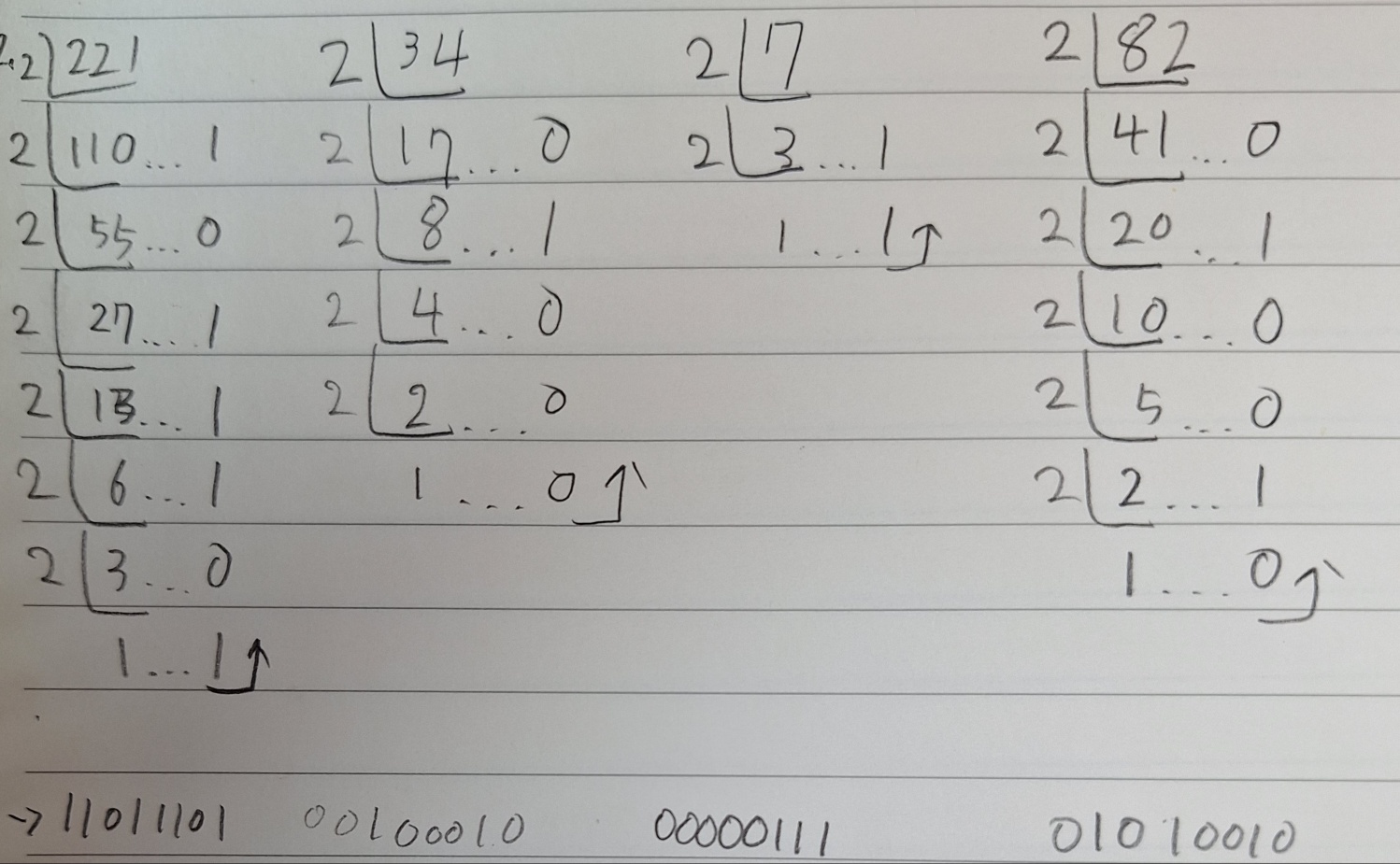 Change the following IPv4 addresses from binary notation(2진법) to dotted-decimal notation(10진법).