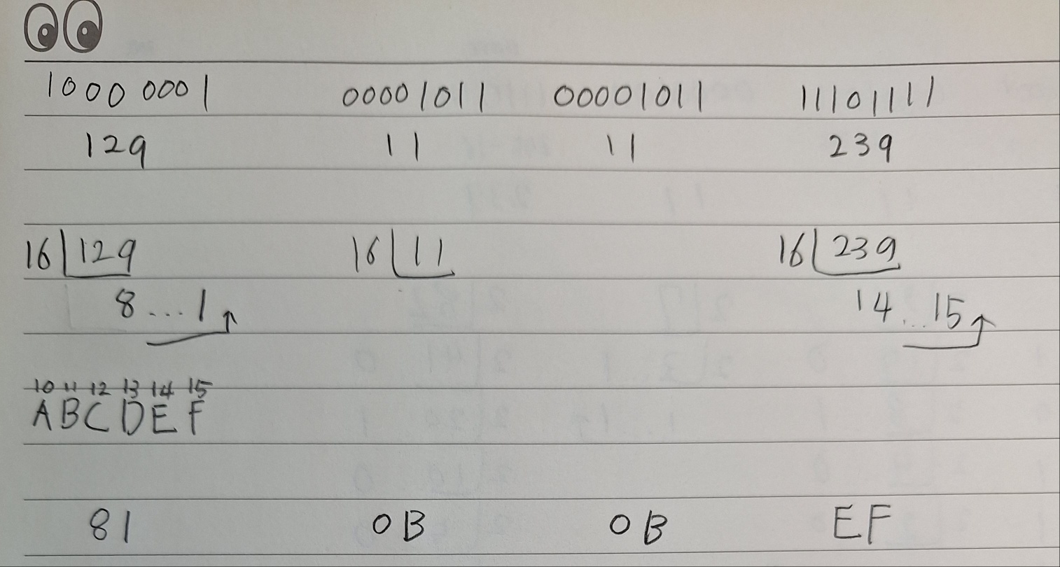 | 10000001 | 00001011 | 00001011 | 11101111 |
