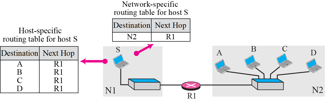 Host-specific routing table은 특별히 길을 지정해야 할 때 사용