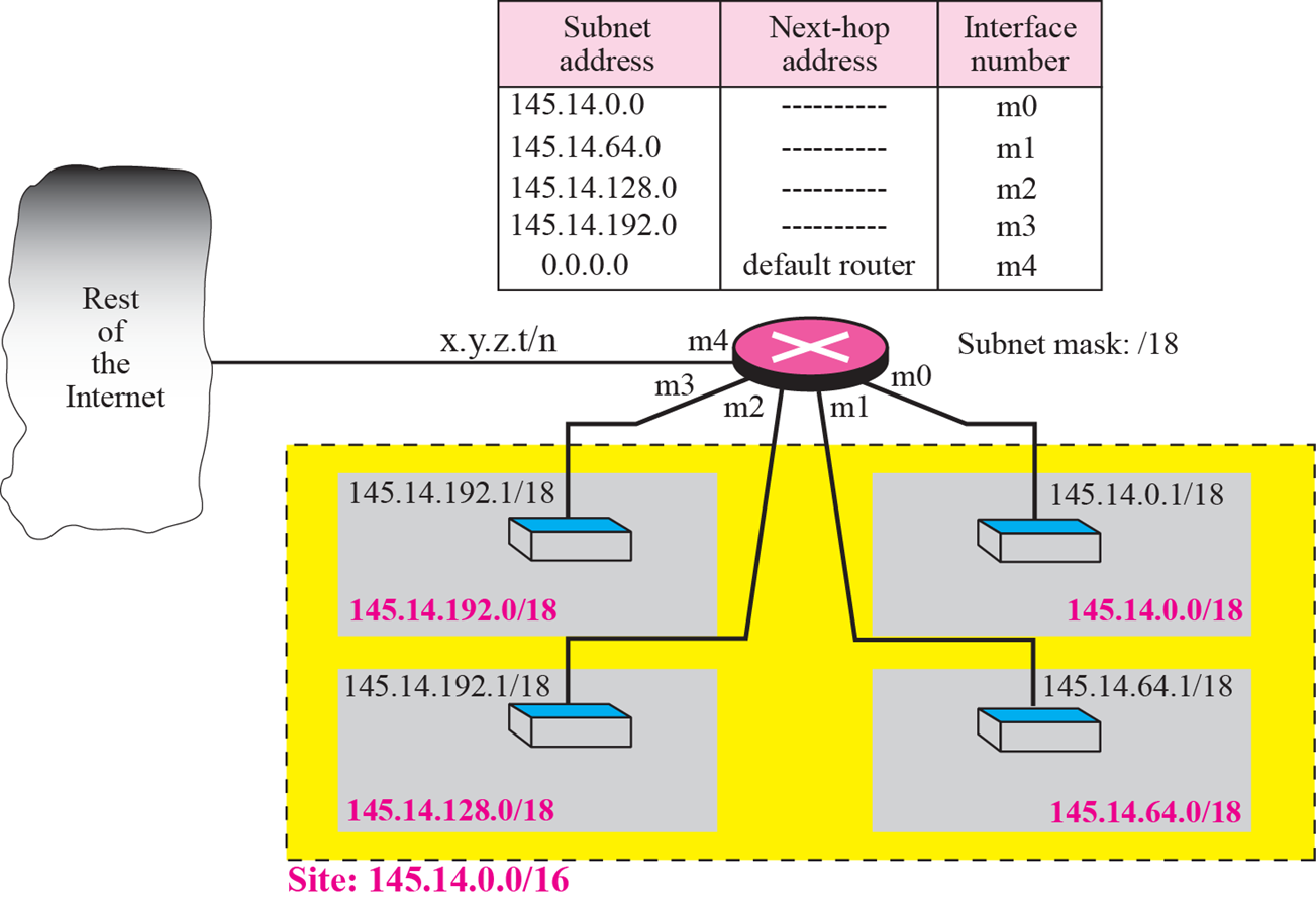 Router R1 in Figure 6.8 receives a packet with destination address 192.16.7.14. Show how the packet is forwarded.