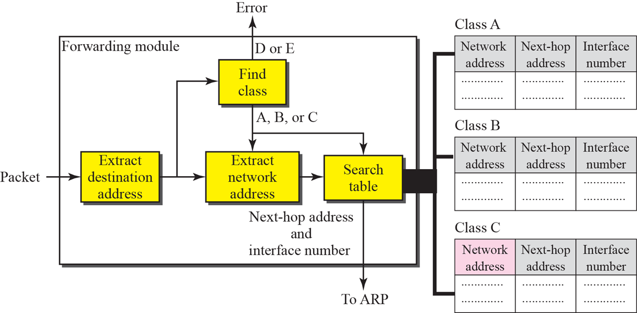 2) Class별로 분류된 Search table에서 Next-hop address 획득