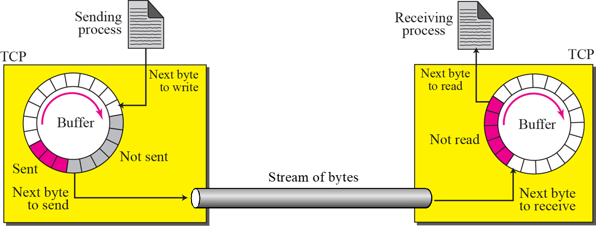 - TCP는 초기 연결 후, stream(연속된 byte) 형태로 data를 전송한다.
