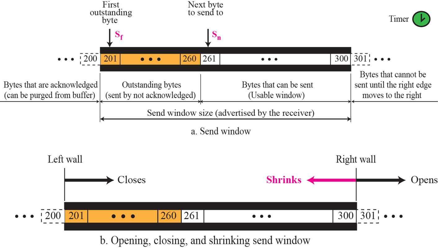 - window가 Shrinks 되는 과정에서 아직 ACK를 받지 못한 Byte가 Window 밖에 있는 경우가 생길 수 있음
