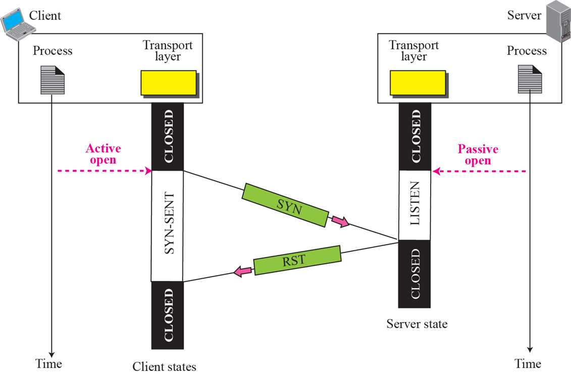 - Connection이 되어 있는 상태에서도 문제가 있다면 언제든 RST 전송 가능