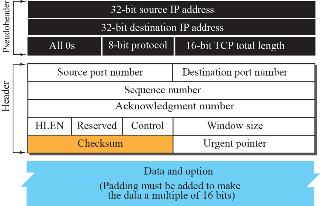 - TCP는 UDP와 다르게 Checksum이 필수적이다(Mandatory)