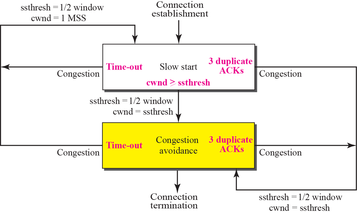 - threshold에 도달 하면 다시 Congestion avoidance mode 진입