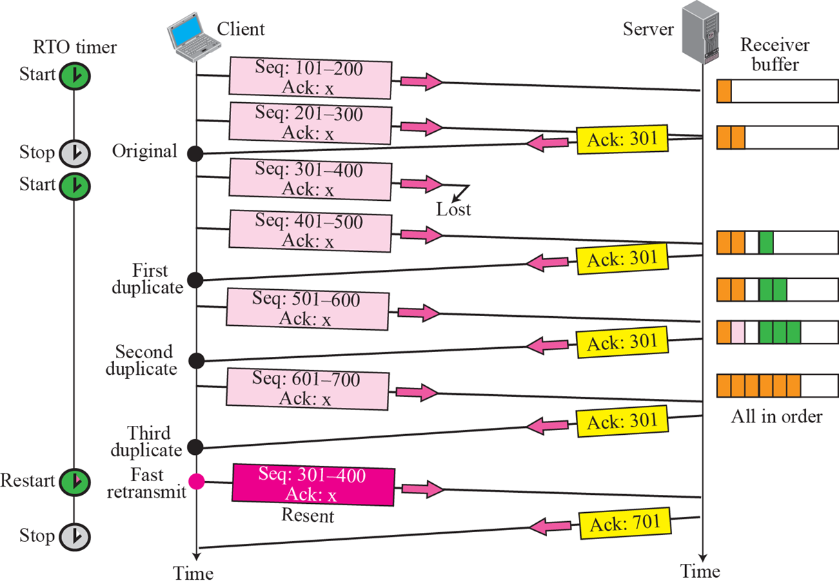 fast retransmission: 동일한 ACK가 3번 연속 오면 Timer 상관 없이 바로 재전송