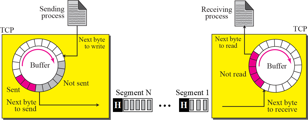 - TCP는 buffer에 있는 data로 Segment를 만들어 전송