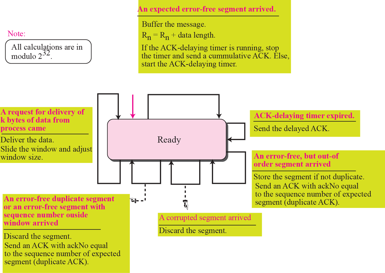 - ACK segment는 자체는 가상의 byte가 있다고 취급하지 않고 sequence number를 소비하지 않음.
