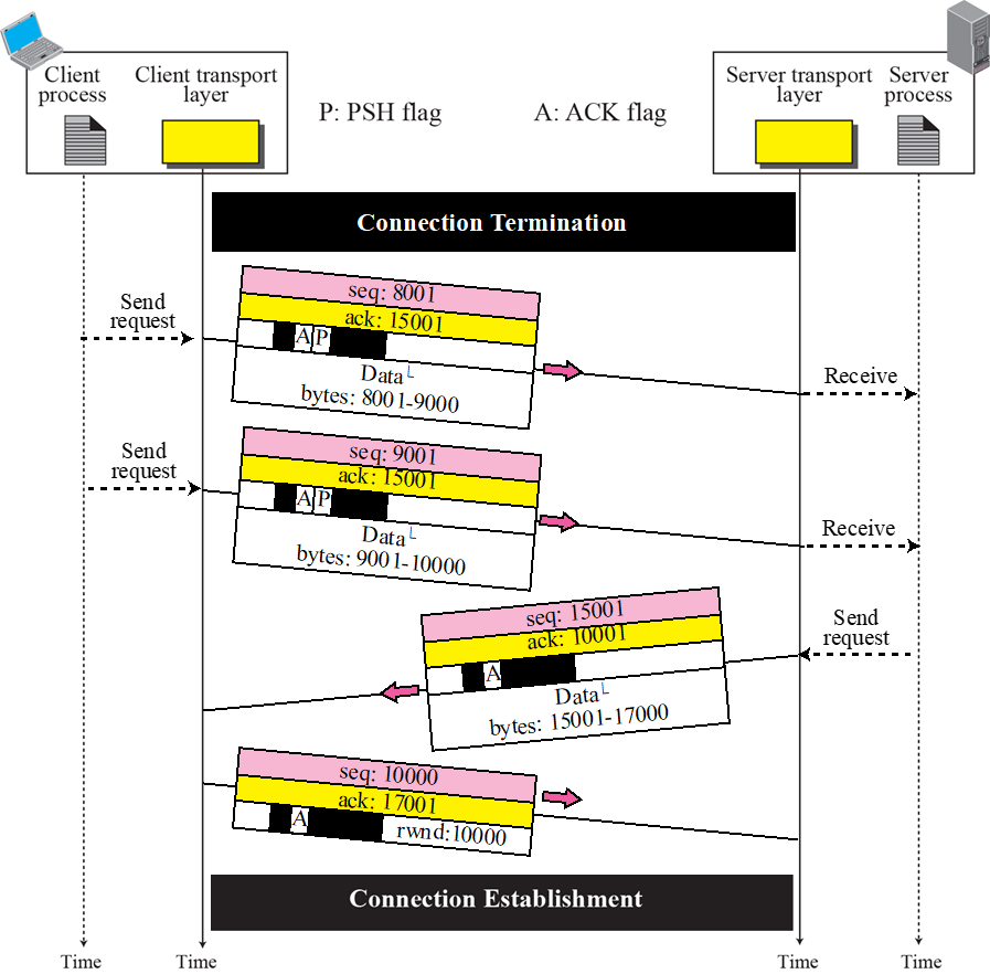 - 각 연결에서 전송되는 segments는 TCP에 의해 sequence number가 정해진다.