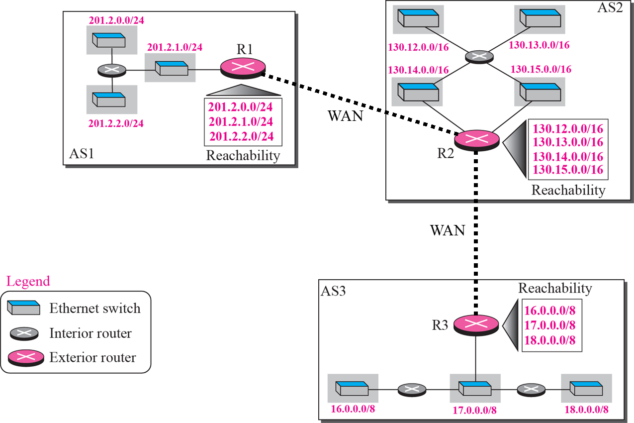 - AS 외부의 특정 network에 접속하는 방법을 알려줌