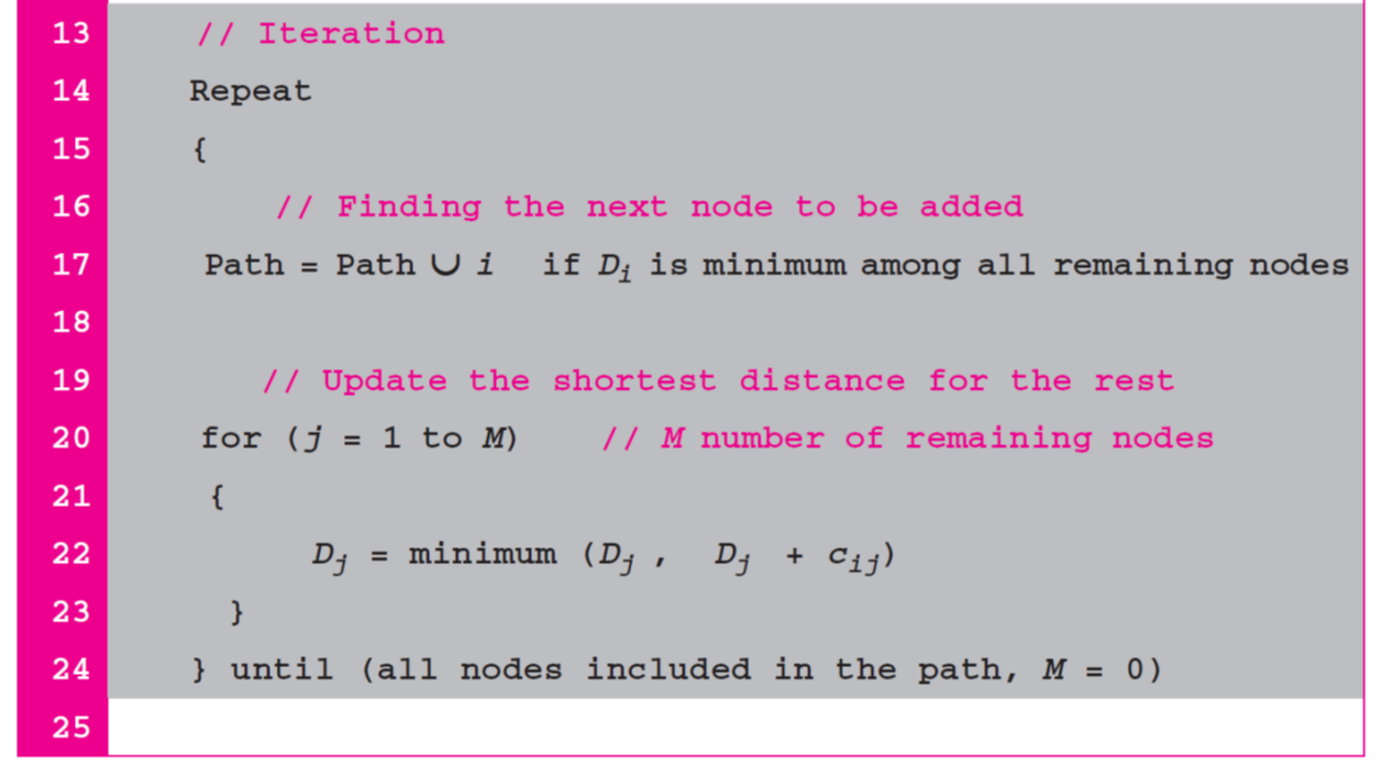 - 알고 있는 거리들 중 최솟값(i-1의 최솟값 ci1) + 새로운 router로 가는 최솟값(1-j의 최솟값 D1j)