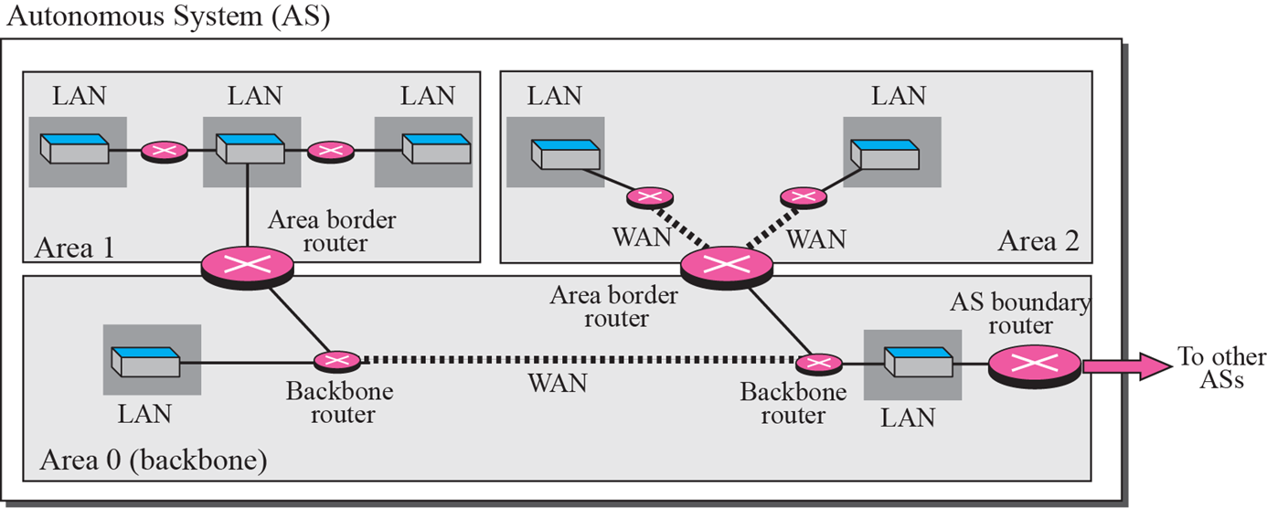 - Area 0는 backbone area로 area끼리 연결 및 다른 AS와의 연결을 담당