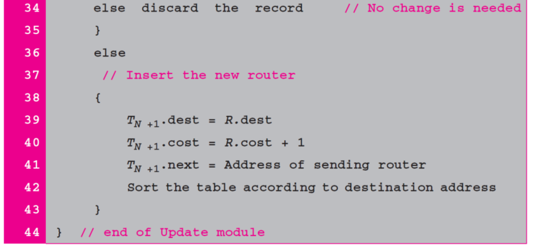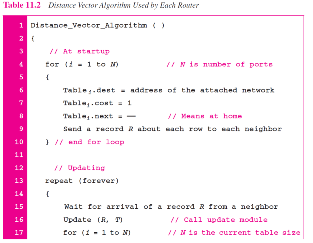 - 이웃이 보낸 routing table의 hop수 +1(본인 포함)
