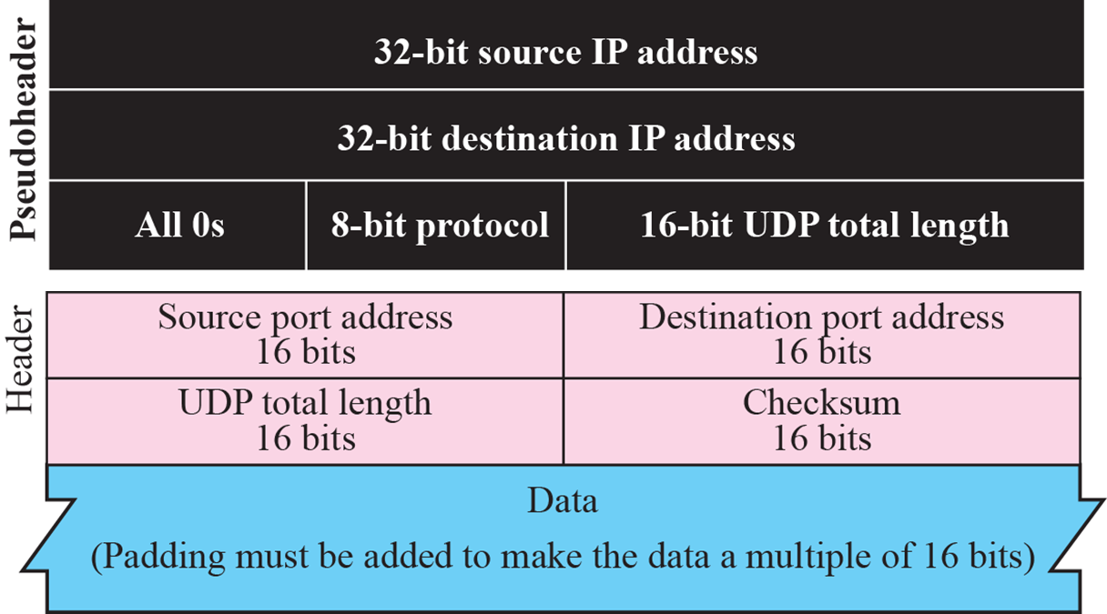 UDP의 checksum에는 IP header의 12byte(Source ip, destination ip, protocol)이 포함됨.